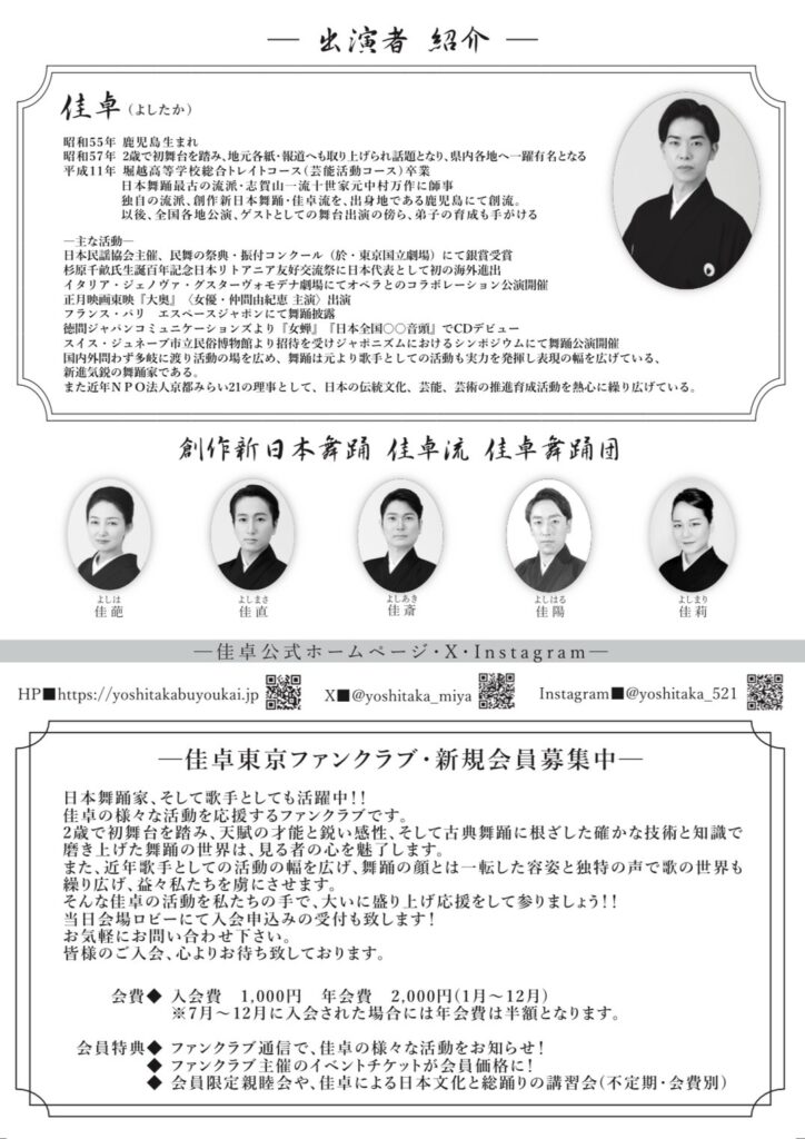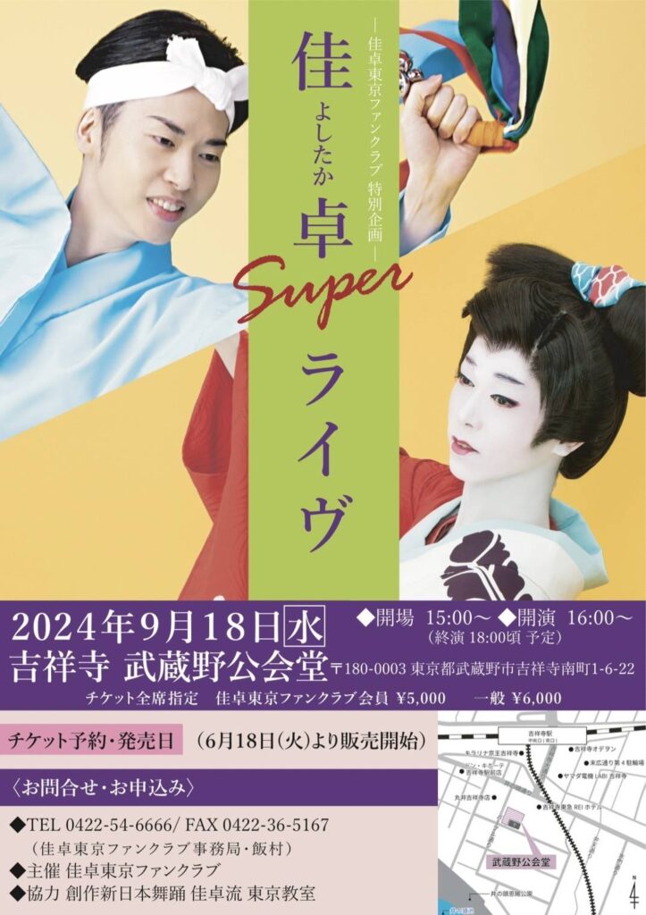 2024年9月18日(水)吉祥寺 武蔵野公会堂で佳卓東京ファンクラブ主催「佳卓Superライヴ」が開催されます。